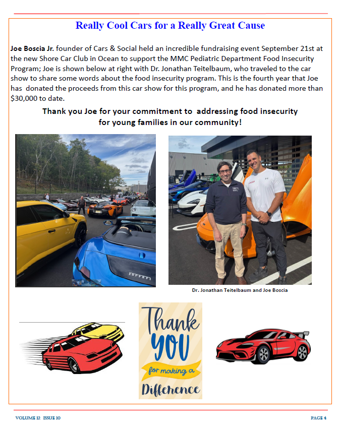 What started four years ago as a small fundraiser has now become one of the most anticipated charity car events in Monmouth County. With growing community support, Cars & Social plans to continue driving forward to fight food insecurity and support local children in need.